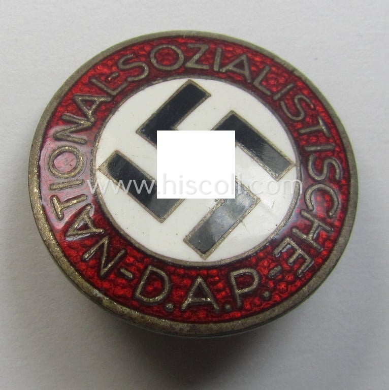 Early-pattern - and rarely encountered! - 'N.S.D.A.P. - Parteiabzeichen' being an: 'Assmann & Söhne'-marked example that is also showing a so-called: 'Ges.Gesch.'-patent-pending- and/or: 'RzM - M1/85'-designation