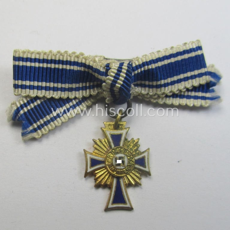 Miniature of an: 'Ehrenkreuz der deutschen Mutter - erste Stufe' (or: golden-class mothers'-cross) being a non-maker-marked example that comes in an overall nice- (albeit moderately worn- ie. used-), condition