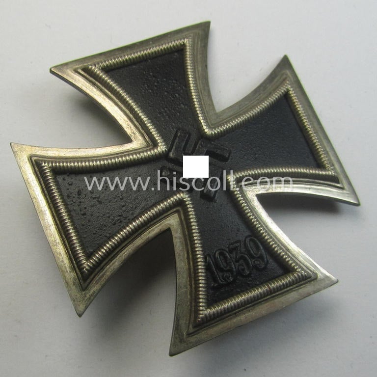 The attractive cross - which is a typical somewhat vaulted- (ie. converse-) shaped and - I deem - quite early-war-period example - has never been cleaned nor polished and retains an attractive age-patina and/or nice, pronounced detail as to be expected. This example - which is an evident and neatly maker- (ie. 'L/11'-) marked specimen as was produced by the desirable maker: 'Wilhelm Deumer' based in the town of Lüdenscheid - comes naturally firmly mounted onto its original- (and naturally unaltered and/or fully functional!) flute-shaped pin and/or typical catch (-set-up). The cross - which is a magnetic example as more often - shows a neatly 'blackened'- and/or fairly 'satin-like'- (ie. somewhat 'shiny') inner-core that retains most (ie. almost all!) of its period colour. It is void of any damage but does show some obvious wear and/or age (as can be seen on the pictures): it has, however, clearly been issued and/or worn and is still a bit stained and/or dirty (it was never cleaned though and retains some of its 'off-factory'-applied polished sides (ie. 'hochpolierte Kanten'). I deem that I have priced this attractive and - I deem - fairly early-period 'Eisernes Kreuz 1. Klasse' by 'Wilhelm Deumer' according to its fully untouched condition!