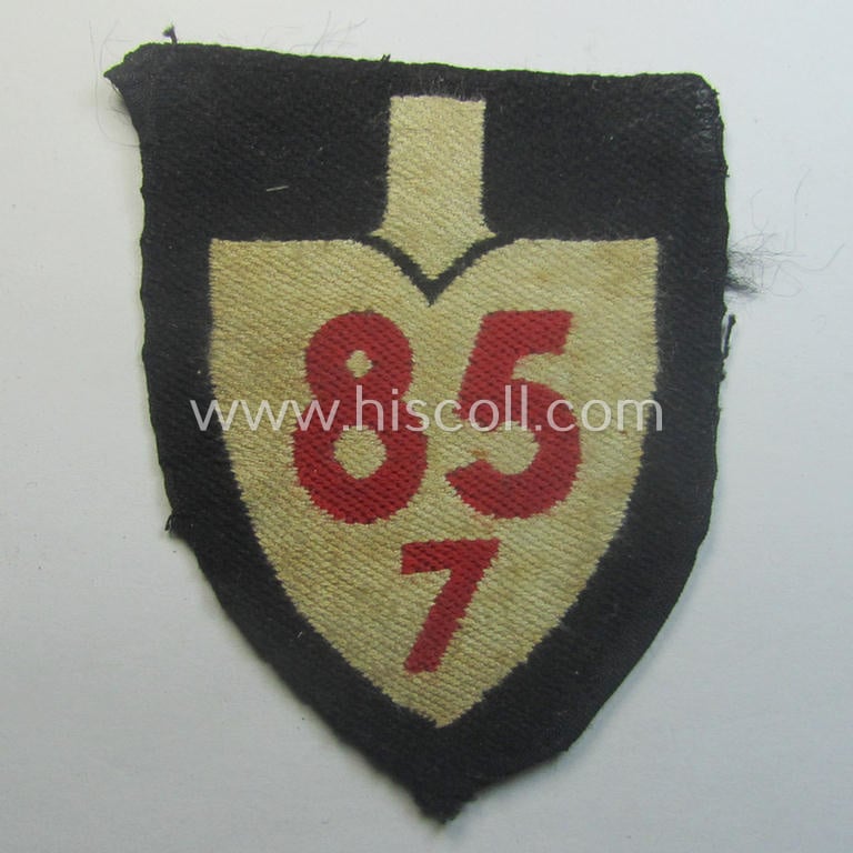 'BeVo'-woven enlisted-mens'- (ie. NCOs'-) pattern, so-called: RAD (ie. 'Reichsarbeitsdienst') sleeve-badge (or: 'Dienststellenabzeichen') bearing the specialist- ie. unit-designation: '85/7'