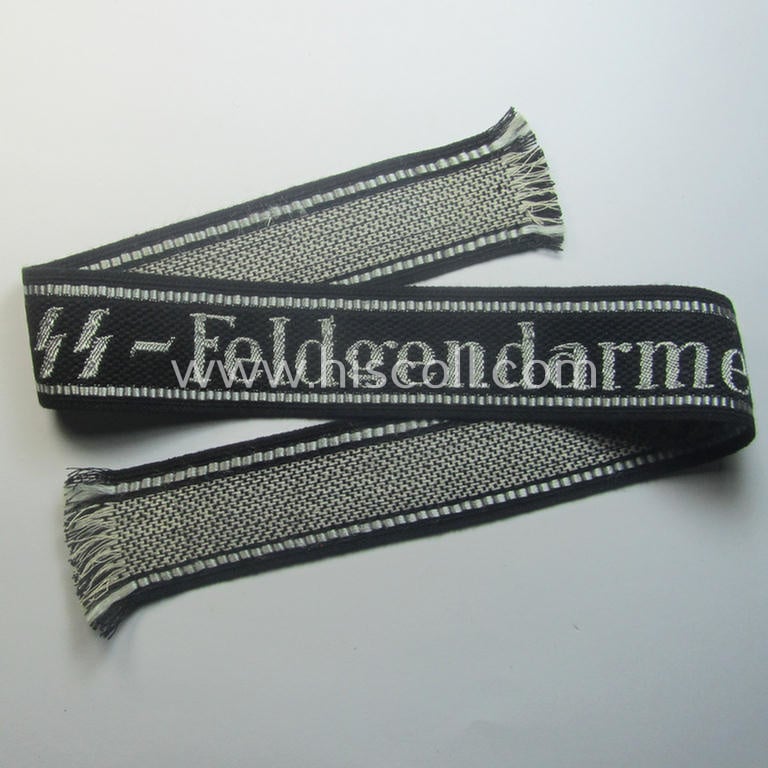 Superb - and truly rarely encountered! - example of a Waffen-SS, 'semi-BeVo'-pattern, EM- (ie. NCO-) type cuff-title (ie. 'Ärmelstreifen') as was intended for a member serving within the: 'SS-Feldgendarmerie'