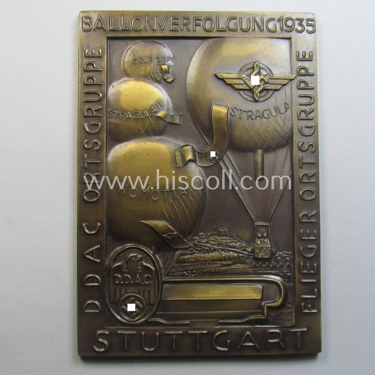 D.L.V.- (ie. D.D.A.C.-) related plaque (ie. 'Erinnerungs- o. nichttragbare Plakette') as issued to commemorate a specific rally entitled: 'Ballonverfolgung 1935 - DDAC Ortsgruppe / Flieger Ortsgruppe - Stuttgart'