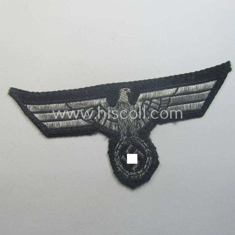 Superb - truly used and tunic-removed - WH (Heeres Pz) 'flatwire'-woven, officers'-type breast-eagle (ie. 'Brustadler für Offiz.) as executed in silverish-coloured braid as was intended for usage on the officers'-pattern 'wrap-around'-tunics