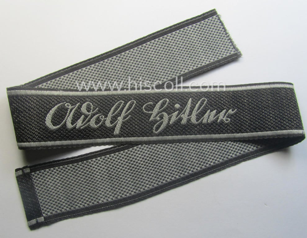 Waffen-SS 1943/44-pattern cuff-title (ie. 'Ärmelstreifen') as executed in typical 'BeVo'-weave-pattern as was intended for a member within the: 1. SS-Panzer-Division "Leibstandarte-SS Adolf Hitler"