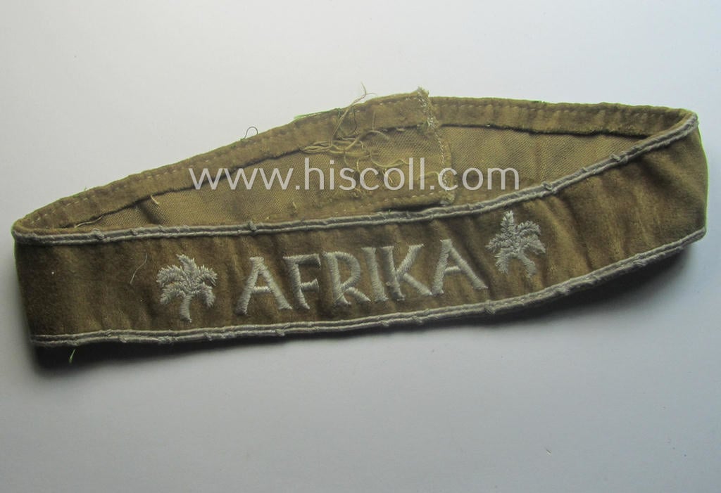 Cleary worn WH cuff-title (ie. 'Ärmelstreifen') entitled: 'Afrika' (being a minimally shortened example that comes in an overall very nice- (ie. issued and clearly worn ie. once tunic-attached-), condition