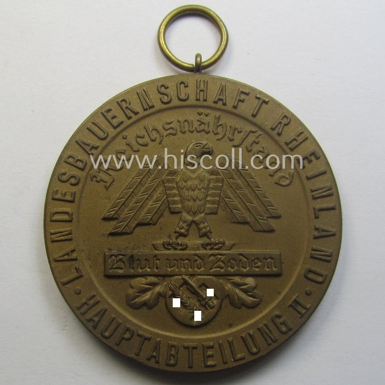 Golden-toned, typical 'Reichsnährstand'- (ie. 'RNSt.'-) related, (portable) commemorative-award entitled: 'Reichsnährstand - Landesbauernschaft Rheinland - Hauptabteilung II - Für Leistungen in der Geflügelzucht'