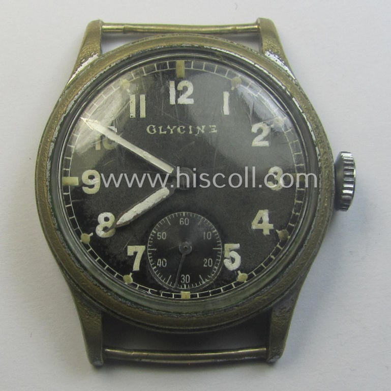 Neat - and scarcely encountered! - WH (Heeres, LW etc.) WWII-period wrist-watch (or: 'Dienstuhr') of the make: 'Glycine' having an engraved number: 'D76763H' on its back (and that comes in a functional- ie. running condition)