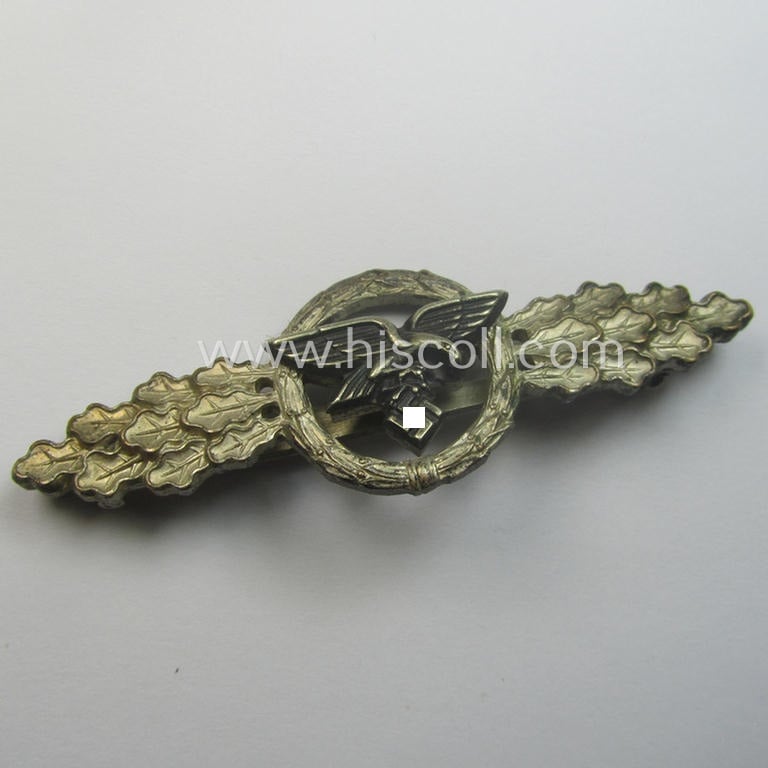 Tombak- (ie. 'Buntmetall'-) based- and/or (typical) non-maker-marked example of a WH (Luftwaffe) 'Frontflugspange für Transport- u. Luftlandeflieger in Silber' as presumably produced by the: 'C.E. Juncker'-company