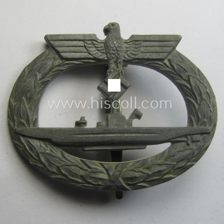 Later-war-period - WH (Kriegsmarine) zinc- (ie. 'Feinzink'-)based, so-called: 'U-Bootkriegsabzeichen' (or: U-boat war-badge) being a (typical) non-marker-marked example by a - by me - unidentified maker