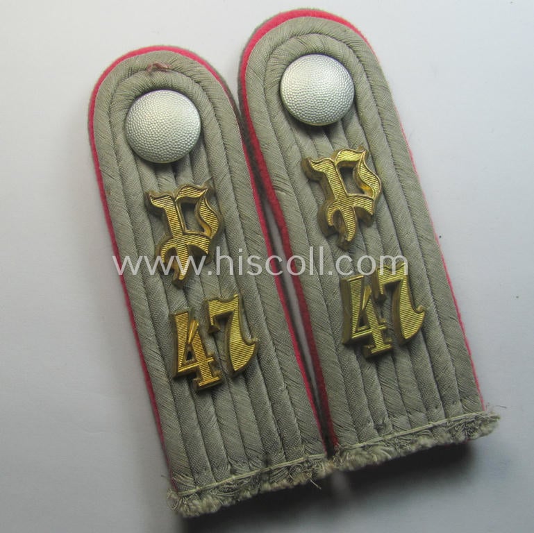 Superb - and fully matching! - pair of WH (Heeres) neatly 'cyphered', officers'-type shoulderboards as (dual)piped in the pink-coloured branchcolour as was intended for a: 'Leutnant der Res. des Pz-Jäger-Rgts. 47'
