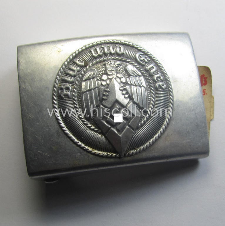 Superb - and virtually mint! - HJ (ie. 'Hitlerjugend') aluminium-based- (and/or unusually 'molded'-pattern!) belt-buckle being a maker- (ie. 'RzM M4/46'-) marked example that still retains its period etiket