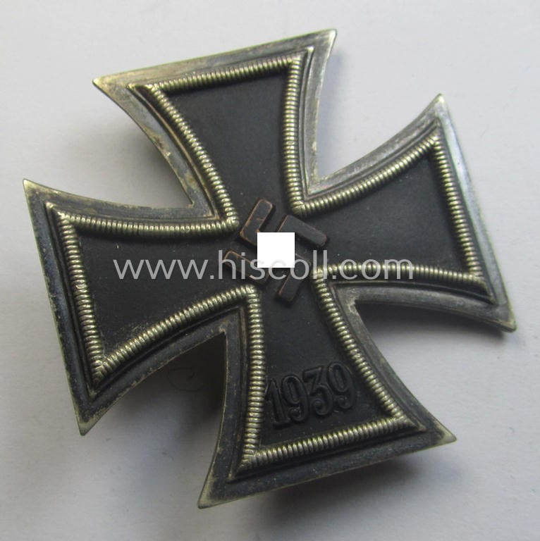 The attractive cross - which is a typical non-vaulted- (ie. non-converse-) shaped and - I deem - quite early-war-period ie. 'copper-coated' example - has never been cleaned nor polished and retains an attractive age-patina and/or nice, pronounced detail as to be expected. This example - which is an evident and neatly maker- (ie. 'L/11'-) marked specimen as was produced by the desirable maker: 'Wilhelm Deumer' based in the town of Lüdenscheid - comes naturally firmly mounted onto its original- (and naturally unaltered and/or fully functional!) flute-shaped pin and/or typical catch (-set-up). The cross - which is a magnetic and 'copper-coated' example as more often - shows a neatly 'blackened'- and/or fairly 'satin-like'- (ie. somewhat 'shiny') inner-core that retains almost all of its period colour. It is void of any real damage (as can be seen on the pictures): it has, however, clearly been issued and/or worn and is still a bit stained and/or dirty (it was never cleaned though and retains only some of its 'off-factory'-applied polished sides (ie. 'hochpolierte Kanten'). I deem that I have priced this attractive and - I deem - fairly early-period 'Eisernes Kreuz 1. Klasse' by the 'Wilhelm Deumer'-company according to its fully untouched condition!