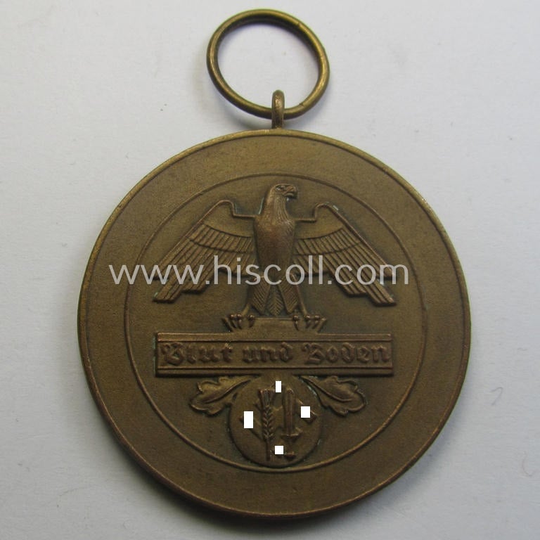 Bronze-toned, typical 'Reichsnährstand'- (ie. 'RNSt.'-) related, (portable) commemorative-award entitled: 'Blut und Boden - Für Verdienste - Reichsnährstand - Landesbauernschaft Sachsen'