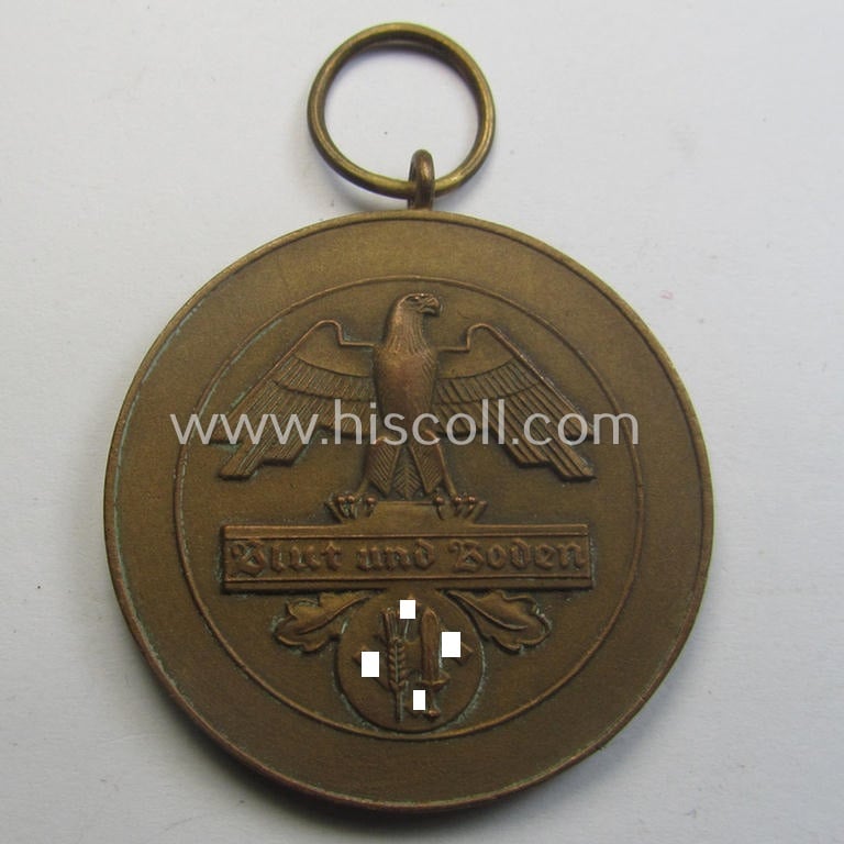 Bronze-toned, typical 'Reichsnährstand'- (ie. 'RNSt.'-) related, (portable) commemorative-award entitled: 'Blut und Boden - Für Verdienste - Reichsnährstand - Landesbauernschaft Sachsen'