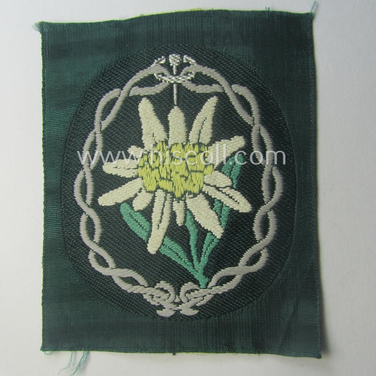 WH (Heeres) EM- (ie. NCO-) type, so-called: 'Edelweiss'-armpatch being a 'BeVo'-woven example as was executed on darker-green-coloured linnen as was specifically intended for usage by the: 'Gebirgsjäger-Trpn.'