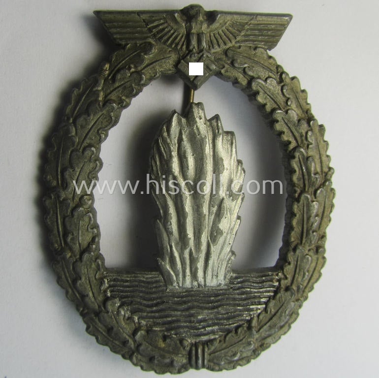 WH (KM) 'Kriegsabzeichen für Minensuch-, U-Boot-Jagd und Sicherungs-Verbände' being a typical non-maker-marked, 'Feinzink'-based example as was (I deem) produced by the: 'Adolf Scholze'-company