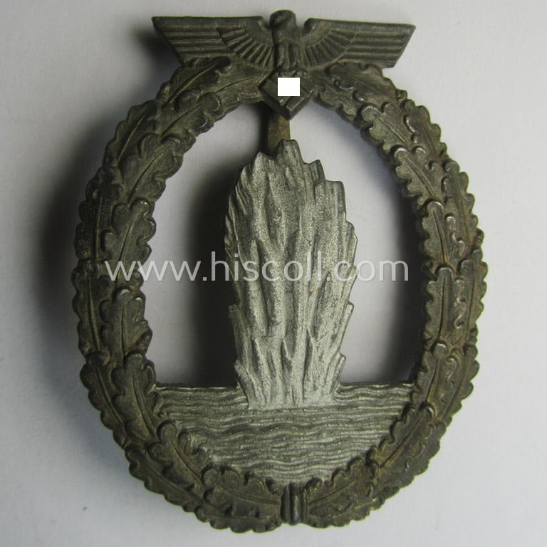 WH (Kriegsmarine) 'Kriegsabzeichen für Minensuch-, U-Boot-Jagd und Sicherungs-Verbände' being a detailed and clearly maker- (ie. 'R.K.') marked, 'Feinzink'-based example as was produced by the 'Rudolf Karneth'-company