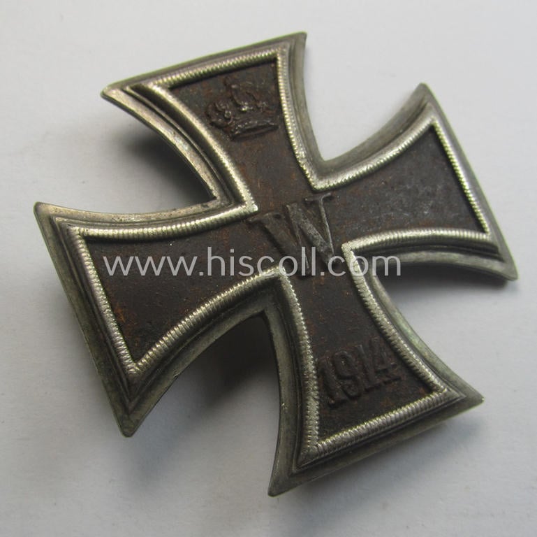 Clearly used- and/or worn, WWI-period 'Eisernes Kreuz 1. Klasse' being a truly converse-shaped and/or genuine silver-based- (ie. '800'-marked!) example that is void of a makers'-designation