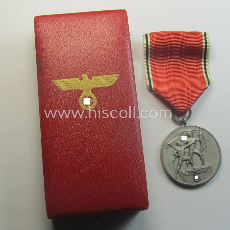 WH Austrian-occupation- (ie. 'Anschluss'-) medal: '13. März 1938' being a very attractive (and hardly tarnished!) example that comes stored in its bright-red-coloured- and/or typical non-maker-marked etui as issued