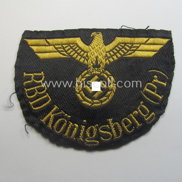 Superb, RB- ('Reichsbahn'-) related arm-eagle as executed in 'BeVo'-weave style as was intended for an official of the: 'Deutsche Reichsbahn' ie. the 'RBD Königsberg (Pr)' (or: 'Reichsbahndirektion Königsberg (Pr)')