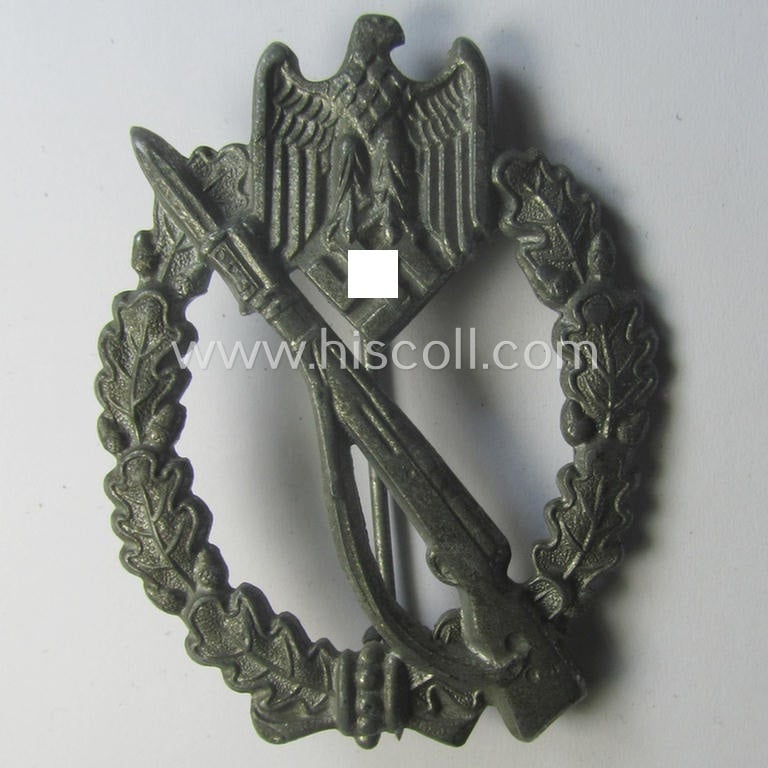 'Infanterie Sturmabzeichen in Silber' being a scarcely seen, non-maker-marked- and/or zinc- (ie. 'Feinzink'-) based specimen as was presumably procuded by the desirable: 'Ernst L. Müller'-company