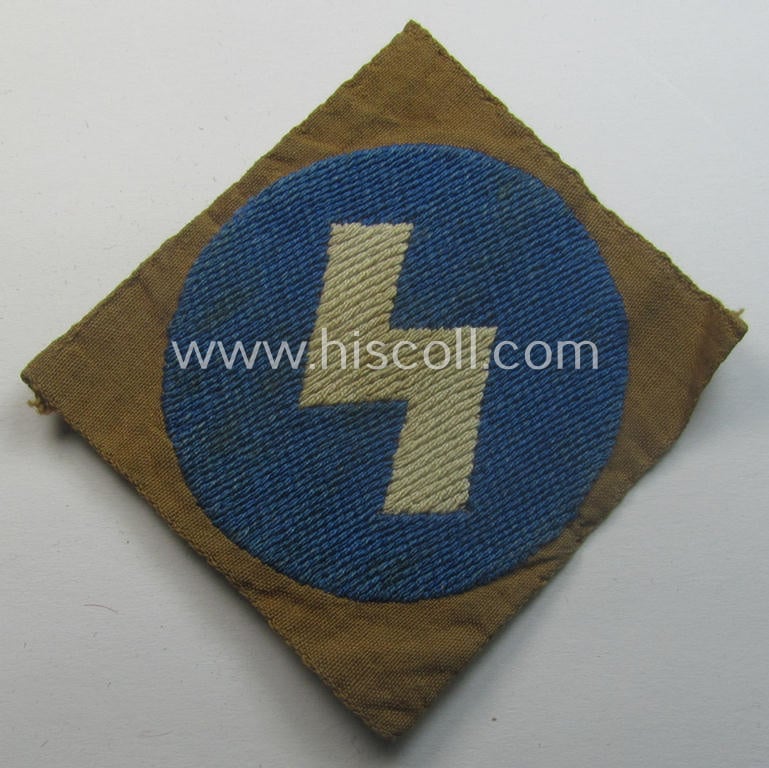 This is a neat example of a DJ (ie. 'Deutsches Jungvolk') arm-badge as was specifically intended for usage by a member who served within the: 'Oberbann 4' being a just minimally used example that is void of an 'RzM'-etiket and that comes in a deem just moderately used- ie. worn-, condition. The white-coloured rune-sign - as executed on a bright-blue- (ie. 'blauer'-) coloured background and woven in the neat so-called: 'BeVo'-weave pattern as always - signified that its bearer belonged to the DJ 'Oberbann 4'. The patch shows some minimal staining ie. dust simply caused by decades of storage and/or minimal wear. Simply a nice occasion to acquire an attractive example of a 'DJ-Oberbann 4'-armpatch that will be hard to be upgraded!