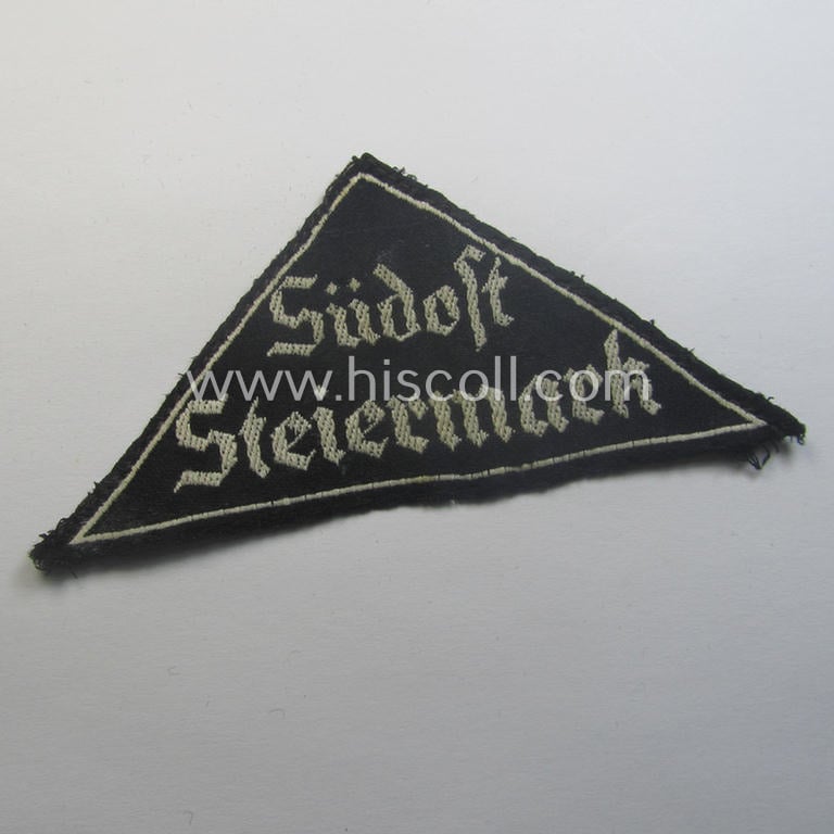 'HJ' ('Hitlerjugend') ie. 'BDM' ('Bund Deutscher Mädel') district-triangle (ie. 'Gebietsdreieck') entitled: 'Südost Steiermark' (being a just moderately used example that misses its: 'RzM'-etiket)