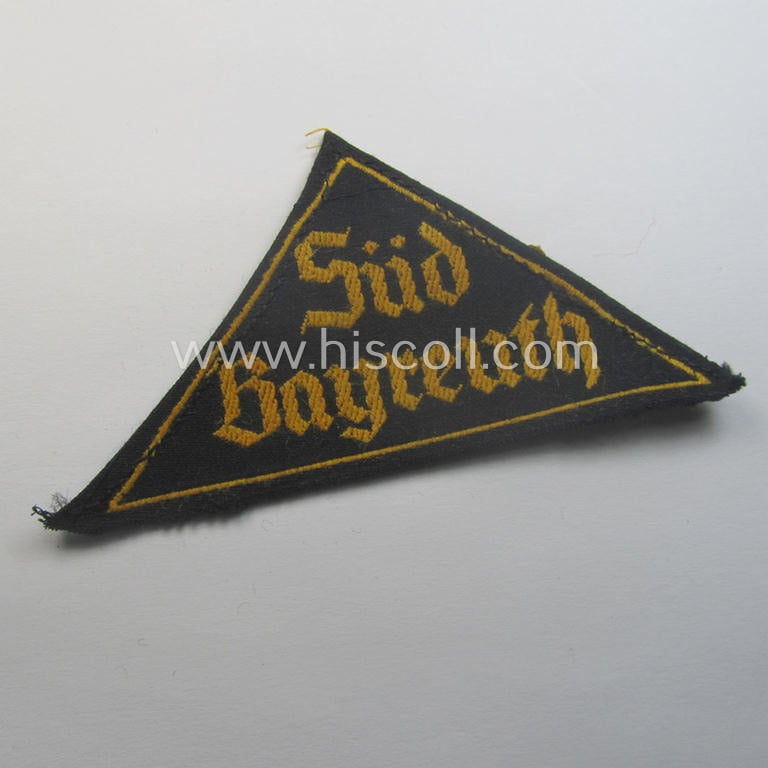Rarely seen 'HJ' ('Hitlerjugend') district-triangle (ie. 'Gebietsdreieck') entitled: 'Süd Bayreuth' (being a 'virtually mint' example that still retains its 'RzM'-etiket)