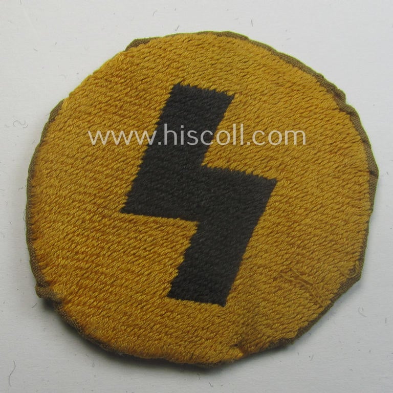 This is a neat - and carefully tunic-removed! - example of a DJ (ie. 'Deutsches Jungvolk') arm-badge as was specifically intended for usage by a member who served within the: 'Oberbann 2' being a clearly used- and/or worn example that is void of an 'RzM'-etiket but that comes in an overall nice condition. The black-coloured rune-sign - as executed on a golden-yellow- (ie. 'goldgelbener'-) coloured background and woven in the neat so-called: 'BeVo'-weave pattern as always - signified that its bearer belonged to the DJ 'Oberbann 2'. The patch - that was carefully folded- and confectioned - shows some minimal staining ie. dust simply caused by decades of storage and moderate wear. Simply a nice occasion to acquire an attractive example of a 'DJ-Oberbann 2'-armpatch that will be hard to be upgraded!