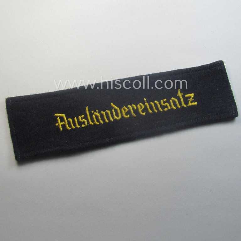 Superb - and actually rarely encountered! - example of the HJ/BDM- ('Hitlerjugend' ie. 'Bund Deutscher Mädel'-) cuff-title (ie. 'Ärmelstreifen') entitled: 'Ausländereinsatz' being an example as executed in the machine-embroidered pattern