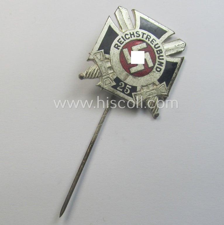 Membership lapel-pin (or: 'Mitgliedsabzeichen') aka: 'Ehrennadel für 25jährige Mitgliedschaft im Reichstreubund ehemaliger Berufssoldaten (o. RTB)' being a maker- (ie. 'Gante - Berlin'-) marked example