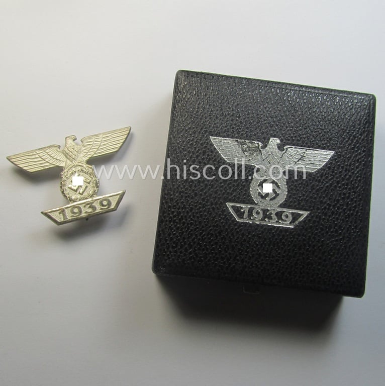 'Wiederholungsspange zum EK I. Klasse' (or: bar to the WWI IC first-class) by the maker (ie. 'Hersteller'): 'B.H. Mayer's Kunstprägeanstalt' and that comes stored in its accompanying etui