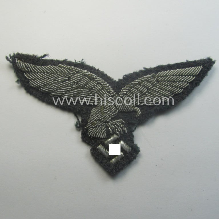 WH (Luftwaffe) officers'-pattern breast-eagle (ie. 'Brustadler für Offiziere der Luftwaffe') being a neatly hand-embroidered example of the: 'Extra Qualität' that comes in a moderately used- (ie. carefully tunic-removed-), condition