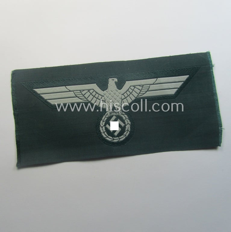 WH (Heeres) early- (ie. pre-war-) period- and/or greyish-coloured breast-eagle of the: 'M36'- (ie. 'M40'-) pattern as was executed in the 'BeVo'-weave pattern on a darker-green-coloured background