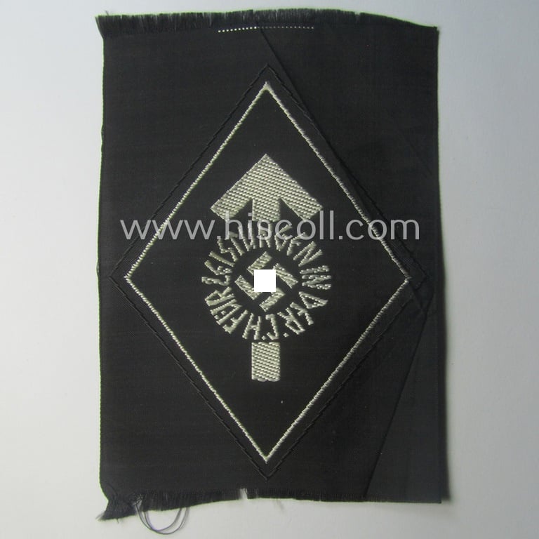 This is an attractive - and actually quite scarcely encountered! - HJ- (ie. 'Hitlerjugend'-) so-called: 'Leistungsabzeichen in Silber in Stoff' (or: cloth-based, silver-class youth sports'-badge) being a cloth-based version as was executed in the neat: 'BeVo'-weave pattern and that still retains its period-attached 'RzM'-etiket in place and that comes in an overall very nice- (ie. probably issued but I deem simply never used nor tunic-attached-), condition. The neat badge depicts a silver-white-toned 'Leistungsrune' onto a black-coloured background and just shows some minimal (storage)age and/or staining. The piece can of course perfectly be mounted onto a HJ-tunic or shirt if wished so. Simply a neat - and truly fairly unusally encountered! - 'Hitlerjugend'-cloth-based, sports'-related patch of the silver-class that will be hard to be upgraded!