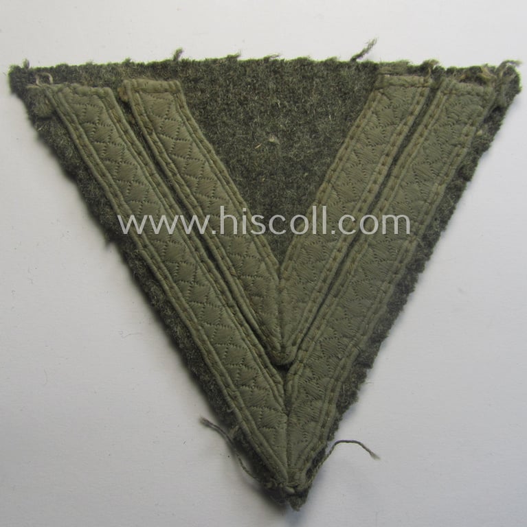 WH (Heeres) 'Armwinkel' (or: arm-chevron) as executed on typical field-grey-coloured wool as was specifically intended for usage by a soldier with the rank of: 'Obergefreiter'