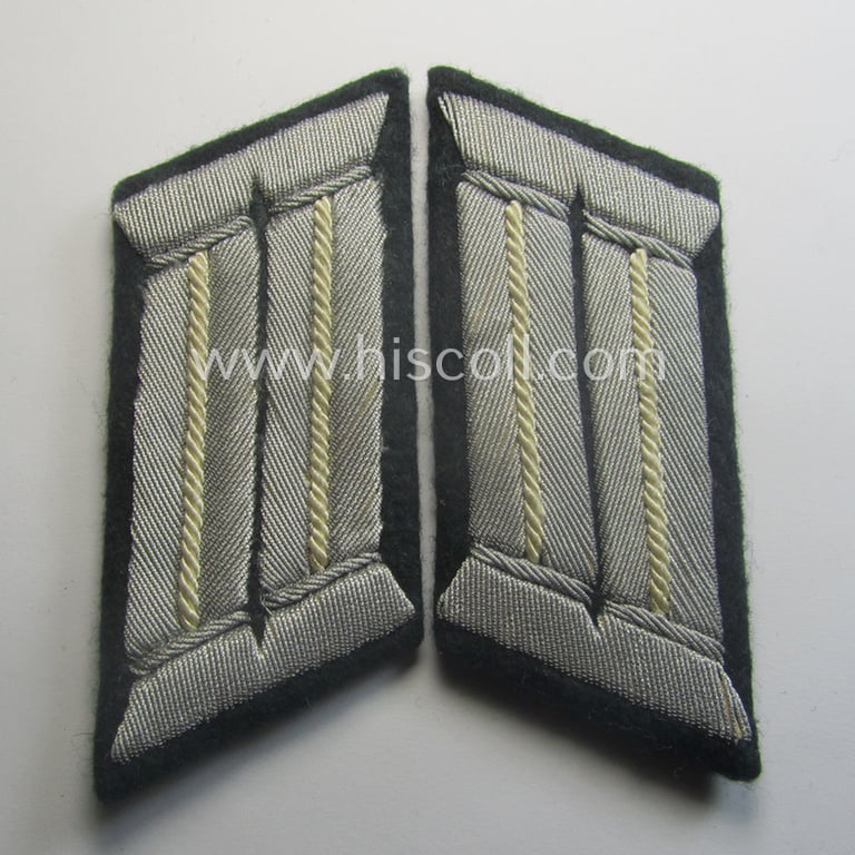 Pair of WH (Heeres) collar-tabs (ie. 'Kragenspiegel für Offiziere') as piped in the white- (ie. 'weisser'-) coloured branchcolour as was intended for an: 'Offizier der Infanterie-Trpn.'