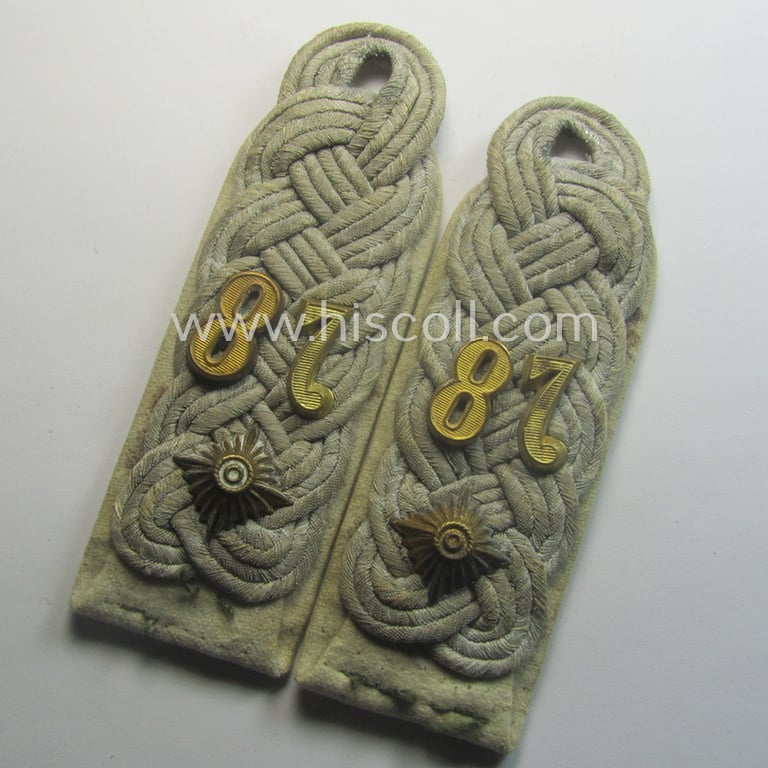 Moderately used pair of WH (Heeres) 'cyphered', officers'-type shoulderboards: 'Oberstleutnant des Infanterie-Rgts. 87'