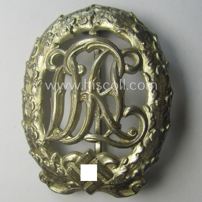 'Reichssportabzeichen DRL in Silber' (or: DRL sports'-badge in silver) being a just moderately worn- ie. used example that is nicely maker- (ie. 'Wernstein - Jena'-) marked on its back