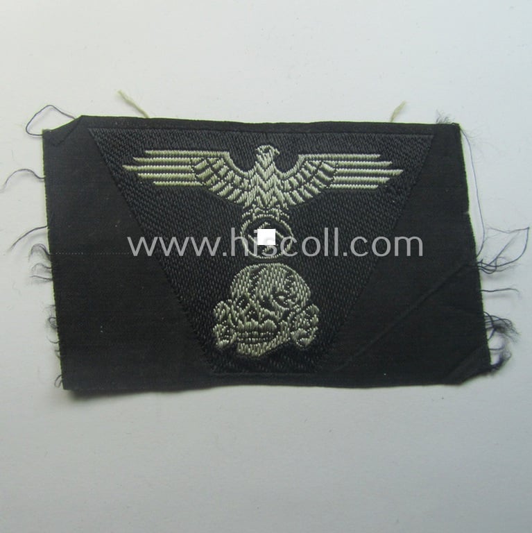 Waffen-SS black-coloured M43-pattern 'Panzer'-cap-trapezoid as executed in 'BeVo'-weave-pattern as was specifically intended for usage on the M43-model field-caps (ie. 'Einheitsfeldmützen')