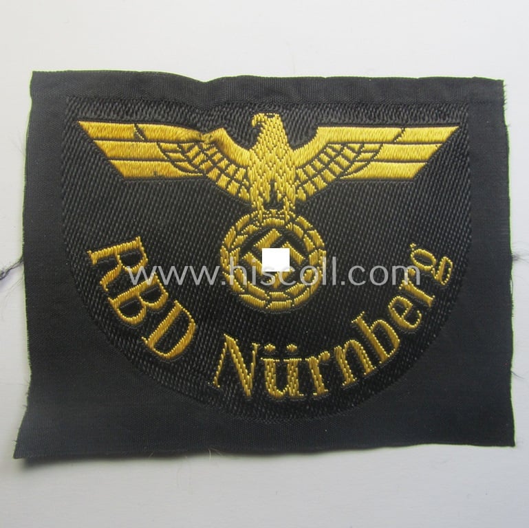 RB- ('Reichsbahn'-) related arm-eagle as executed in 'BeVo'-weave style as was intended for an official of the: 'Deutsche Reichsbahn' ie. the 'RBD Nürnberg' (or: 'Reichsbahndirektion Nürnberg')