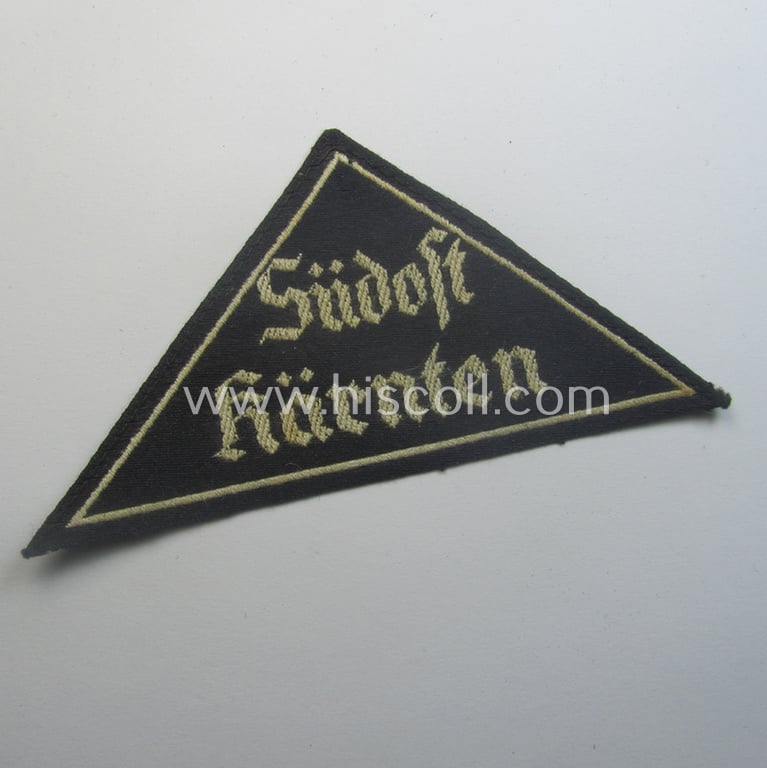 'HJ' ('Hitlerjugend') ie. 'BDM' ('Bund Deutscher Mädel'-) district-triangle (ie. 'Gebietsdreieck') entitled: 'Südost Kärnten' being a moderately used- ie. worn example