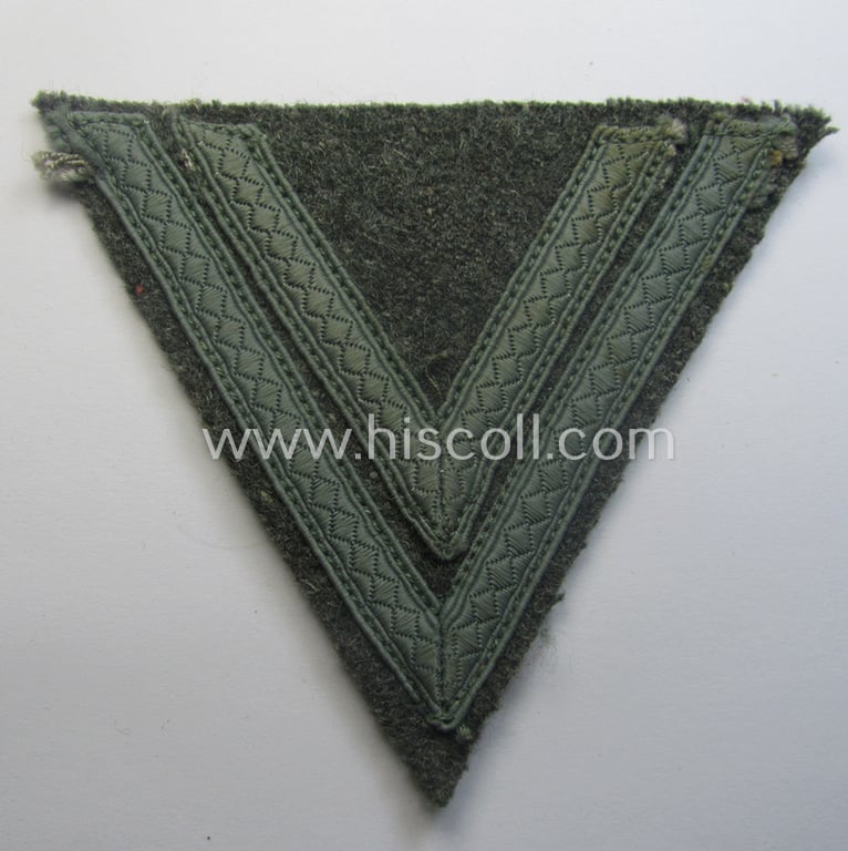 WH (Heeres) 'Armwinkel' (or: arm-chevron) as executed on typical field-grey-coloured wool as was specifically intended for usage by a soldier with the rank of: 'Obergefreiter'