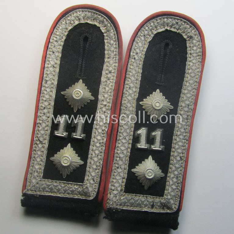 Superb - and rarely found! - pair of WH (Heeres) 'cyphered', NCO-type shoulderstraps (for usage onto the black-coloured, 'wrap-around'-styled Panzer-tunics) as intended for usage by an: 'Oberfeldwebel des Panzer-Rgts. 11'