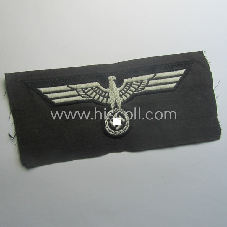 WH (Heeres) early- (ie. pre-) war-period- and/or white-coloured 'Panzer'-type breast-eagle of the so-called: 'M35'- (ie.'M36'-) pattern as was executed in the neat 'BeVo'-weave pattern on a black-coloured background