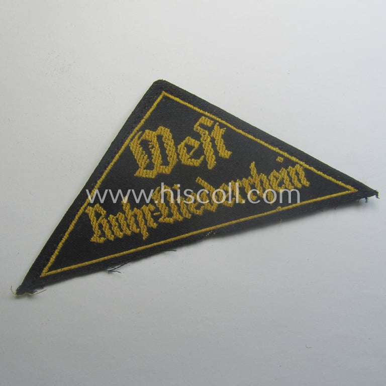 'HJ' ('Hitlerjugend') district-triangle (ie. 'Gebietsdreieck') entitled: 'West Ruhr-Niederrhein' (being a 'virtually mint- ie. unissued'-) example that still retains its period 'RzM'-etiket)
