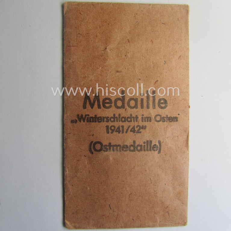 Empty 'Zellstoff'-based pouch as was intended for a medal: 'Winterschlacht im Osten 1941/42' as was produced by the company: 'Walter & Henlein - Gablonz a. N.'