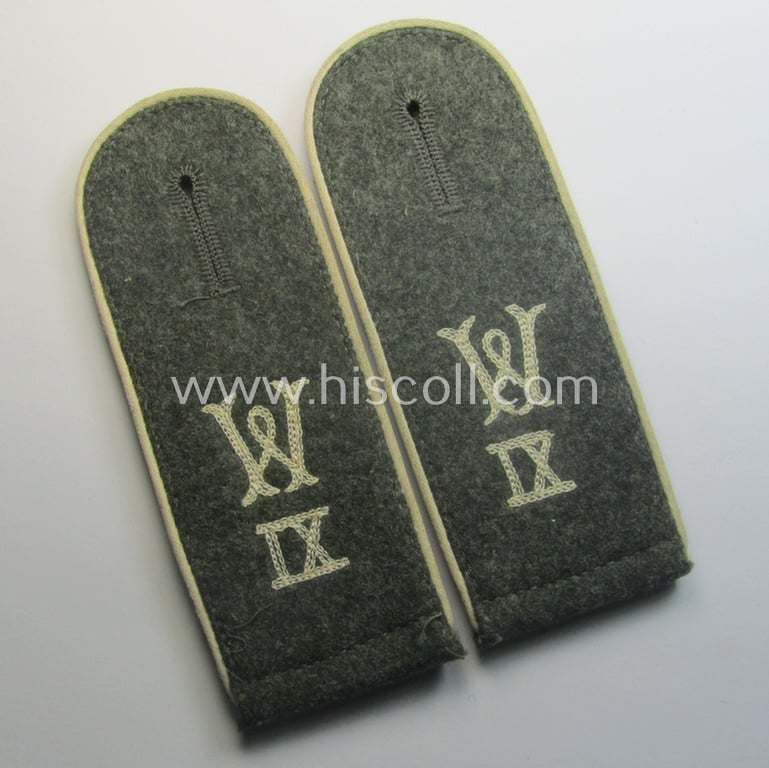 Pair of early- (ie. mid-) war-period WH (Heeres), 'M40'-pattern (rounded-styled and neatly 'cyphered') EM-type shoulderstraps as was intended for a: 'Soldat des Wehr-Ersatzdienstelle im Wehrkreises IX'