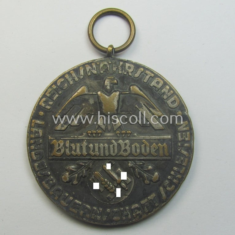Silber-toned, typical 'Reichsnährstand'- (ie. 'RNSt.'-) related, (portable) loyal-service-award entitled: 'Reichsnährstand - Landesbauernschaft Schlesien - Für 20 Jahre Treue Dienste und Fleiss'