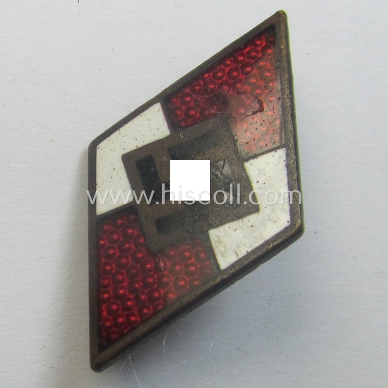 HJ (ie. 'Hitlerjugend') enamelled lapel-pin (ie.: 'Raute') with a: 'RzM-M1/143'-makers'-designation